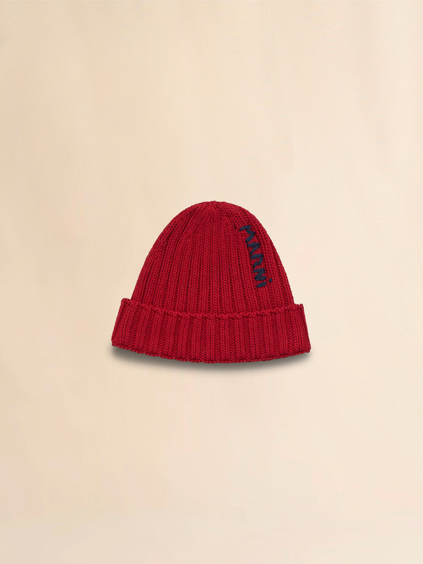 Fisherman's rib knitted beret made of pure cotton. A Marni logo is hand embroidered on the trim. Made in Italy MODEL CLZC0158A0UFC85000R71 COMPOSITION Primary Fabric: 100% Cotton Knit