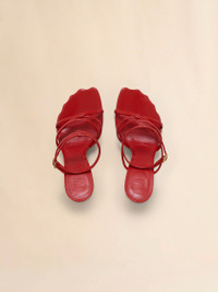 RED LEATHER MOONLIGHT SANDAL WITH ANKLE STRAP