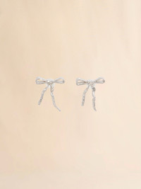 Shiny palladium metal earrings with bow detail, sculpted to encapsulate the essence of cascading fabric. Natural freshwater pearl back. Made in Italy MODEL ORMV0594A0M200100N29 COMPOSITION Body: 90% Brass 10% Pearl