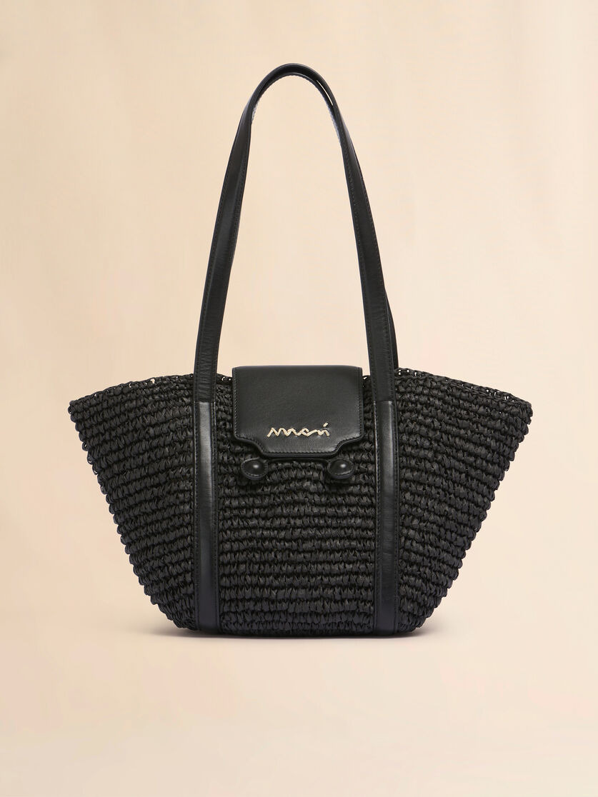 SMALL BLACK RAFFIA-EFFECT TRUNKAROO BEACH BAG