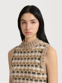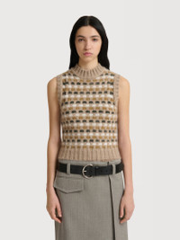 WHITE AND GREEN JACQUARD SHETLAND WOOL VEST