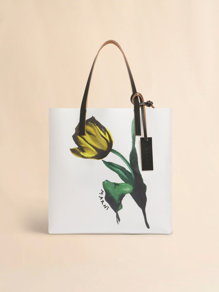 Tribeca North/South open tote bag with contrast back. Bright tulip print on the front, created in collaboration with the artists Slawn and Soldier. Twin leather handles and logo tag. Detachable and adjustable shoulder strap. Made in Italy MODEL SHMPQ10A22P873500Y20