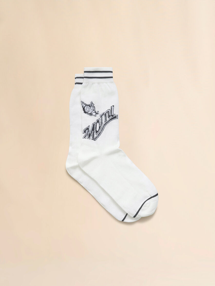 Mid-calf socks made from a stretch cotton blend. Jacquard Marni logo and wolf detail, interpreting one of the prints from this season's exclusive Artists' Capsule. Made in Italy MODEL SKZC0151Q0UFC19000W09 COMPOSITION Primary Fabric: 80% Cotton Knit 20% Polyamide Knit