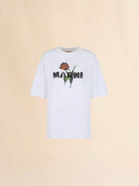 Short-sleeved T-shirt made from cotton jersey. Boxy fit with crew neck. Tulip print with Marni logo. MODEL THJET49P18USCY31LOW01 COMPOSITION Primary Fabric: 100% Cotton Knit