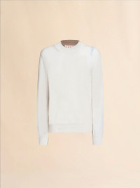 Silk and wool knitted jumper with long sleeves and a crew neck. The regular fit features a contrasting back panel, and a hand embroidered Marni Symbol on the left shoulder. MODEL GCMD0580Q0UFZ628HAW01 FIT The model is 5' 9''. The model is wearing size 40 IT. COMPOSITION Primary Fabric: 70% Virgin Wool Knit 30% Silk Knit