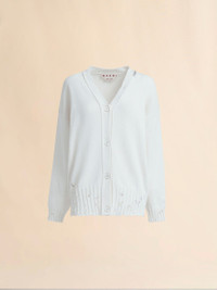 WHITE DISHEVELLED COTTON CARDIGAN WITH MARNI MENDING LOGO