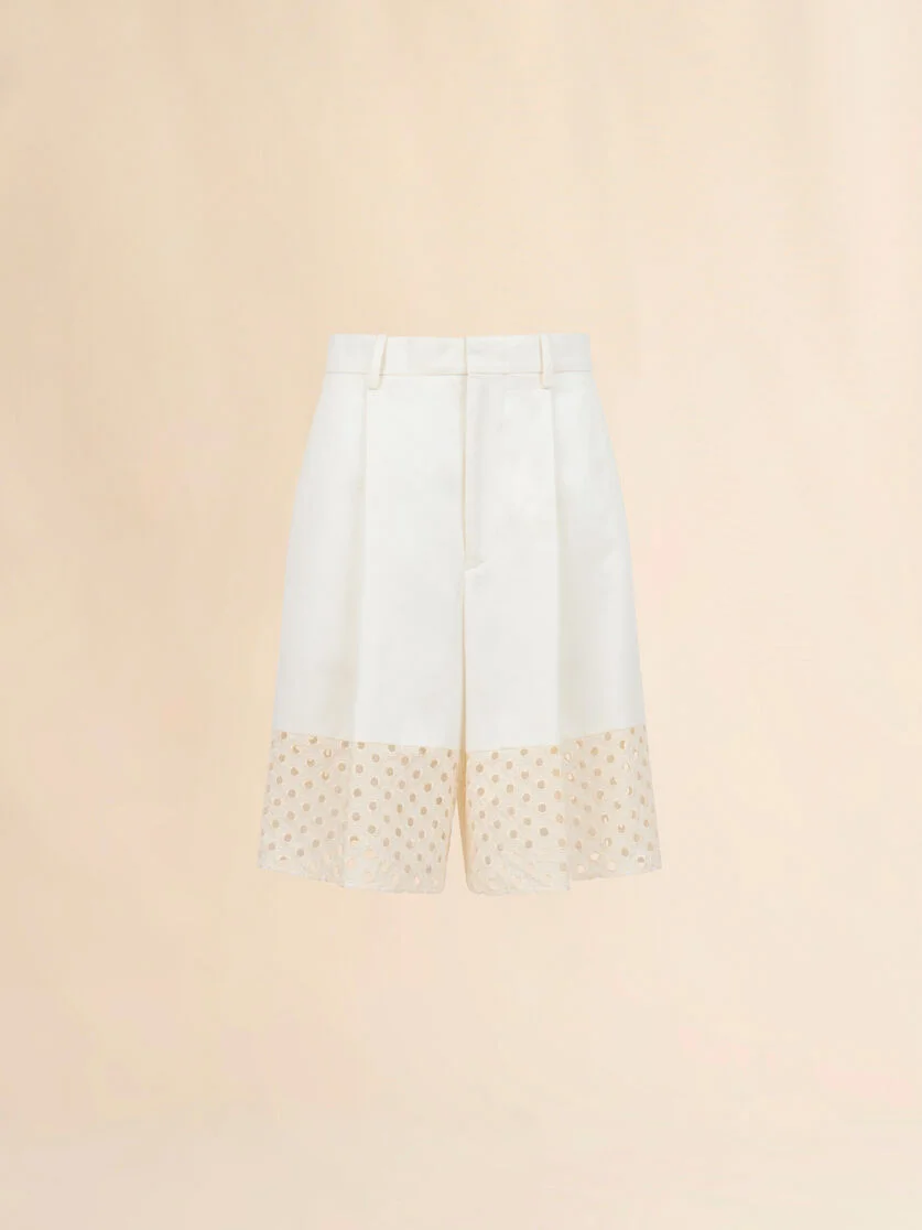 WHITE GABARDINE SHORTS WITH BRODERIE ANGLAISE PANELS