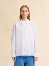 WHITE ORGANIC POPLIN SHIRT WITH GATHERED BACK