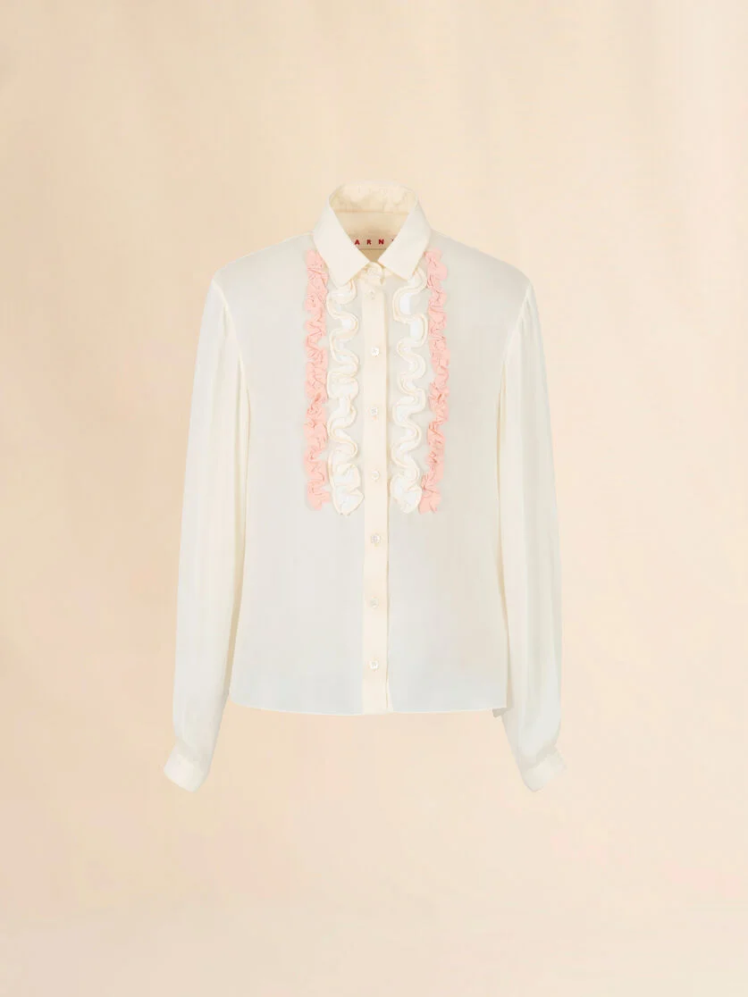 WHITE SILK GEORGETTE SHIRT WITH RUFFLES