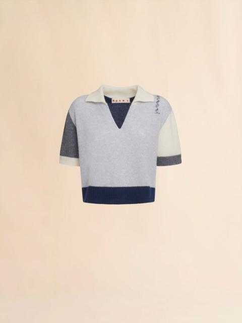 GREY CASHMERE COLOUR BLOCK POLO SHIRT WITH MARNI SYMBOL