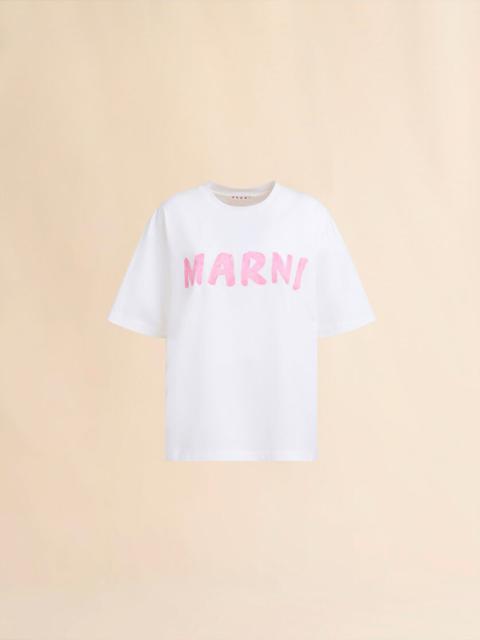 WHITE COTTON T-SHIRT WITH MARNI BAR POSTCARD PRINT