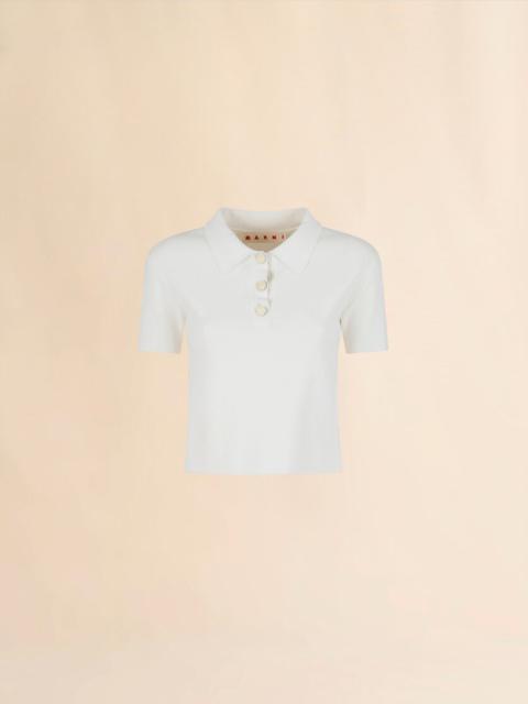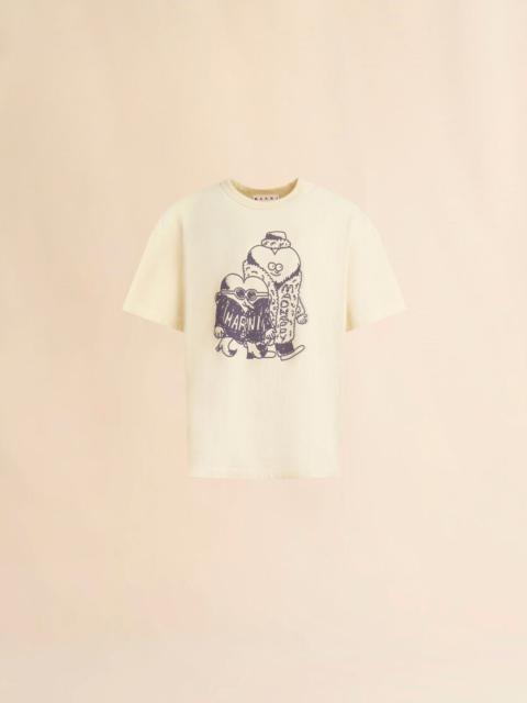 IVORY COTTON CREWNECK T-SHIRT WITH PRINTED MARNI LOGO