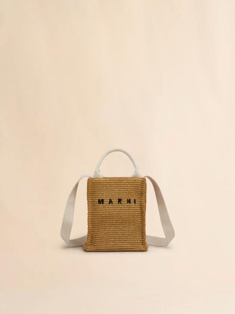BROWN RAFFIA-EFFECT TOTE MINI BAG