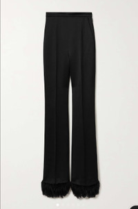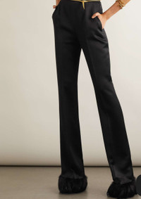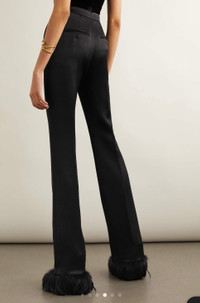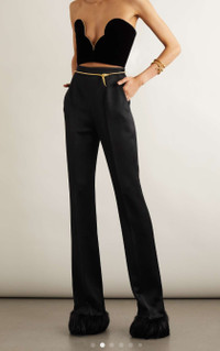 Paloma Picasso was Yves Saint Laurent's muse back in the '70s, changing the pace of the brand with her bold style. For Spring '22, Anthony Vaccarello directly references her signature look on the runway, styling these pants with a clutch tucked into the high-rise waistband. They're made from lustrous satin-crepe with extra long straight legs and feather-trimmed cuffs.