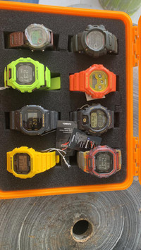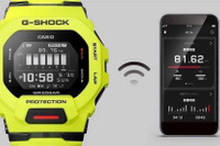 Case / bezel material: Resin Resin Band Shock Resistant Mineral Glass 200-meter water resistance LED backlight (Super illuminator) Auto light switch, selectable illumination duration (1.5 seconds or 3 seconds), afterglow Mobile link (Automatic connection, wireless linking using Bluetooth®) Training Function Display of distance, speed, pace, and other calculated values based on accelerometer, auto/manual lap times, Auto Pause, target alert setting (time, altitude, calories burned) on/off, training display customization (elapsed time, distance, pace, lap time, lap distance lap pace, average pace, speed, average speed, calories burned) Training Data (Up to 100 runs, up to 140 lap times per run) Elapsed time, distance, pace, calories burned Life Log Data Daily data display (step count), Monthly data display (running distance) User profile creation Flight mode World time 38 time zones* (38 cities + coordinated universal time), daylight saving on/off, auto summer time (DST) switching *May be updated when connected to a smartphone. 1-second stopwatch Measuring capacity: 99:59'59'' Measuring modes: Elapsed time, split time Countdown timer Timer for interval measurement (up to five time settings) Measuring unit: 1 second Input range: 00'00'' to 60'00'' (1-second increments) Others: Auto-repeat (number of repeats settable from 1 to 20) Vibrator 4 daily alarms with snooze Power Saving (Display goes blank to save power 3 hours everyday.) Full auto-calendar (to year 2099) 12/24-hour format Button operation tone on/off Vibration on/off Regular timekeeping: Hour, minute, second, am, pm, month, date, day Accuracy: ±15 seconds per month (with no mobile link function) Approx. battery life: 2 years on CR2032
