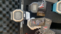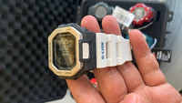 Specifications Case / bezel material: Resin / Stainless steel Resin Band Shock Resistant Mineral Glass 200-meter water resistance LED backlight (Super illuminator) Auto light switch, selectable illumination duration (1.5 seconds or 3 seconds), afterglow Mobile link (Automatic connection, wireless linking using Bluetooth®) Training Function Display of distance, speed, pace, and other calculated values based on accelerometer, auto/manual lap times, Auto Pause, target alert setting (time, calories burned) on/off, training display customization (elapsed time, distance, pace, lap time, lap distance, lap pace, average pace, speed, average speed, calories burned) Training Data (Up to 100 runs, up to 140 lap times per run) Elapsed time, distance, pace, calories burned Life Log Data Daily data display (step count), Monthly data display (running distance) User profile creation Flight mode Moon data (moon age of the specific date, moon phase) Tide graph (tide level for specific date and time) Displayed information is intended for reference only. Sunrise, sunset time display Sunrise time and sunset time for specific date, daylight pointers World time 38 time zones* (38 cities + coordinated universal time), daylight saving on/off, auto summer time (DST) switching *May be updated when connected to a smartphone. 1-second stopwatch Measuring capacity: 99:59'59'' Measuring modes: Elapsed time, split time Countdown timer Timer for interval measurement (up to five time settings) Measuring unit: 1 second Input range: 00'00" to 60'00" (1-second increments) Others: Auto-repeat (number of repeats settable from 1 to 20) Vibrator 4 daily alarms with snooze Power Saving (Display goes blank to save power 3 hours per day.) Full auto-calendar (to year 2099) 12/24-hour format Button operation tone on/off Vibration on/off Regular timekeeping: Hour, minute, second, am/pm, month, date, day Accuracy: ±15 seconds per month (with no mobile link function) Approx. battery life: 2 years on CR2032 Close Size of case / Total weight Size of case : 50.9×46×14.7mm Total weight : 66g