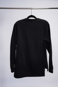 Worn a few times, personally distressed the front, lots of life left. This crewneck sweatshirt is slightly oversized to just the right amount of drape. Along with dropped shoulders, It features side cuts on both sides as well as thumb punch holes on sleeves. Made of French Terry Cotton.