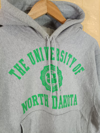 Please read Description 1st :- Item Description ( Shirt/Jacket) :- Brand : Champion Premium Reverse Weave Type : Vintage The University Of Dakota Hoodie Condition : Used / Great Condition / Shabby Defect : This is a used item. However it has a minor stain due to previous wear and it is washable and not affected the application. Please refer to the picture of the item given. Manual Measurament :- Chest : 21.5" Length : 24" Shoulder :20 " Sleeve : 26" Hem : 16" Please Noted !! Product may slightly vary due to lighting, camera usage or your monitor settings. Shipping :- All sales is including shipping fee. Shipping worldwide using DHL Express estimate 5-7 days will receive the goods. ALL SALES ARE FINAL Welcome To Binding Offer's Feel Free To Ask Any Other Questions. THANKS.