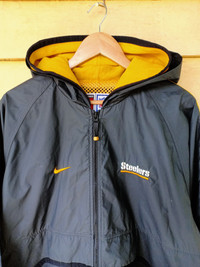 Please Read Description 1st 📍Item Descrtiption :- 🔹Brand :Nike 🔸Item Type : Vintage NFL Steelers Field Jacket 🔹Size On Tag :M 🔸Authenticated : 100% Authentic Tag and Washtag Provided Refer Picture 📍Manual Measurament :- 🔹Chest :26.5" 🔸Length :30" 🔹Shoulder :- 🔸Sleeve Length :31" 🔹Hem :26" 💡Approximate manual measurements ( lay flat ) in inches 📍Item Condition : 🔹Used : Great Condition 🔸Impurities effect : Yes / Got a minor stai. And it is Washable / Stain cause due to previous wear 🔹Flaws/Defect : NIL 🔸Replacement/Repair :NIL 💡Product may slightly vary due to lighting, camera usage or your monitor settings. Shipping : Shipping Worlwide. Item will be shipped Using DHL Express within 1-5 days after payment have been made. SHOPPING CALMLY,IDENTIFIED EVERY DETAIL OF THE ITEM FIRST BEFORE MAKING FINAL DECISSION AND PAYMENT.NO REFUND IF YOU MAKE THE WRONG CHOICES. THANK YOU FOR YOUR COOPERATION , HOPEFULLY YOU CAN HAVE THE DESIRED ITEM THAT YOU FINDING