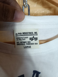 Please read Description 1st :- Item Description ( Shirt/Jacket) :- Brand : Alpha Industries Type : Casual Tees Condition : Used / Great Condition Defect : This is a used item. Please refer to the picture of the item given. Manual Measurament :- Chest : 21.5" Length :25 " Shoulder :19 " Sleeve : 8" Hem :21.5 " Please Noted !! Product may slightly vary due to lighting, camera usage or your monitor settings. Shipping :- All sales is including shipping fee. Shipping worldwide using DHL Express estimate 5-7 days will receive the goods. ALL SALES ARE FINAL Welcome To Binding Offer's Feel Free To Ask Any Other Questions. THANKS.