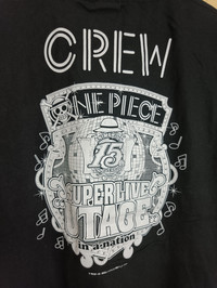 Please read Description 1st :- Item Description ( Shirt/Jacket) :- Brand : One Piece Type : 15 Anniversary Crew Tees Condition : Used / Great Condition Defect : This is a used item. Please refer to the picture of the item given. Manual Measurament :- Chest :21.5 " Length :25 " Shoulder : 19" Sleeve : 7.5" Hem : 21.5" Please Noted !! Product may slightly vary due to lighting, camera usage or your monitor settings. Shipping :- All sales is including shipping fee. Shipping worldwide using DHL Express estimate 5-7 days will receive the goods. ALL SALES ARE FINAL Welcome To Binding Offer's Feel Free To Ask Any Other Questions. THANKS.