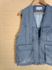 Please read Description 1st :- Item Description ( Shirt/Jacket) :- Brand : Yin & Yang Pour Homme Type : Denim Vest Condition : Used / Great Condition / Shabby/ Sun Faded Defect : This is a used item.However it has minor stretch distressed and it is not affected the application. Please refer to the picture of the item given. Manual Measurament :- Chest :21 " Length :24 " Shoulder :14.5 " Sleeve : - Hem :20 " Please Noted !! Product may slightly vary due to lighting, camera usage or your monitor settings. Shipping :- All sales is including shipping fee. Shipping worldwide using DHL Express estimate 5-7 days will receive the goods. ALL SALES ARE FINAL Welcome To Binding Offer's Feel Free To Ask Any Other Questions. THANKS.