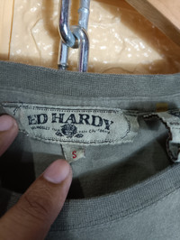 Please read Description 1st :- Item Description ( Shirt/Jacket) :- Brand : Ed Hardy Type : Tees Condition : Used / Great Condition Defect : This is a used item. Please refer to the picture of the item given. Manual Measurament :- Chest : 19" Length : 25" Shoulder :16.5 " Sleeve : 7" Hem : 19" Please Noted !! Product may slightly vary due to lighting, camera usage or your monitor settings. Shipping :- All sales is including shipping fee. Shipping worldwide using DHL Express estimate 5-7 days will receive the goods. ALL SALES ARE FINAL Welcome To Binding Offer's Feel Free To Ask Any Other Questions. THANKS.