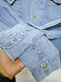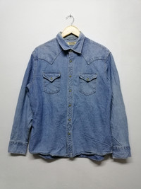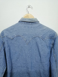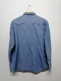 This is used clothing.All item is in good condition when up for selling Please do not depend on the size of the tag as there may be got differences in goods according to the country of manufacture. Mistakes in making a choices will not get a refund after the goods ordered have been received. Designer : Kansai Jeans Item Type : Denim Shirts Button Up Condition :8.5/10 ( Great Condition) Authentication :100% authenticated ( Tag And Wash Tag is provided refer picture for further details) Additional Details :Great item by Kansai Jeans. Item is still in good conditions. However do have some flaws at the collar which is not affected the application . No need to restore and its ready to wear. Size On Tag : L Chest : 22" Lenght : 28" Shoulder : 18.5" Sleeve Lenght : 24.5" Hem : 22" 💡Approximate manual measurements ( lay flat ) in inches 💡Product may slightly vary due to lighting, camera usage or your monitor settings. Thank you for reading the details 1st of the items provided before making any final decission and payment. NO REFUND IF YOU MAKE THE WRONG CHOICES. Shipping worlwide VIA DHL Express within 1- 5 working days. Free shipping fee for US Region. THANK YOU.
