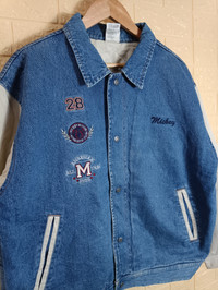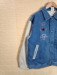 Please read Description 1st :- Item Description ( Shirt/Jacket) :- Brand : Disney Mickey Mouse Type : Vintage Denim Varsity Jacket Condition : Used / Great Condition/ Minor Distressed Defect : This is a used item.However it has a minor stain due to previous wear and it is washable and not affected the application. Please refer to the picture of the item given. Manual Measurament :- Chest :25 " Length : 26" Shoulder : 22" Sleeve :23.5 " Hem : 23" Please Noted !! Product may slightly vary due to lighting, camera usage or your monitor settings. Shipping :- All sales is including shipping fee. Shipping worldwide using DHL Express estimate 5-7 days will receive the goods. ALL SALES ARE FINAL Welcome To Binding Offer's Feel Free To Ask Any Other Questions. THANKS.