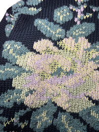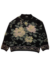/ Jean Paul Gaultier / \ Floral Intarsia knit turtleneck \ A/W1984, JPG’s second-ever men’s collection \ Size 50, fits like a Medium, slightly cropped and boxy \ by Jean-Paul Gaultier \ France 🇫🇷 / With no formal fashion education to boast of, Jean Paul Gaultier established himself in the 70s and 80s as the “enfant terrible" of French fashion. His irreverent style left nothing sacred, dancing over the standard guard rails of high-fashion — he played with gender roles, adorning men in skirts decades before others opted to, and allowed plus sized women and older men to grace his runways. His talent was undeniable, though his utilization of such gifts made him a fiercely divisive designer. While often ripped by the French press, he gained the hearts of numerous subversive, forward-thinking icons, including Madonna and Marilyn Manson, both whom he conceptualized tour wardrobes for. This knit floral comes from Gaultier’s second ever men’s collection, which doubled as his first men’s winter output. It’s made with a base of heavy wool, and the hand-done duplicate stitched flowers feature a blend of bouclé, wool and mohair. /