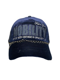 Vintage hat from 1976 Features an embroidered logo, suede and corduroy fabrics, and a removable Star-chain detail hanging from the front of the hat. Size OS with adjustable strap SHIPS DAY OF PURCHASE ORIGIN: 🇺🇸