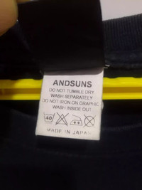 The Amazing ANDSUNS T shirt Japanese Brand Rare Pre-owned in good condition. (please see the pictures for details) MEASURES ABOUT (APPROXIMATELY) # ARMPIT TO ARMPIT: 21.5 INCH # LENGTH (BACK COLLAR DOWN): 28 INCH # SIZE ON TAG : L # MADE IN JAPAN NOTE : (please see the pictures for details Ship to worldwide • All items will be shipped out within 1-3 days after payment received. • Usually, it takes about 18 - 24 business days for delivery for all International order. Sometimes, It may take up to 24 working days. However after 30 days your item still not arrive, please contact us immediately. • For Holiday Period (eg: Christmas, Chinese New Year and etc), shipping will take longer time to • reach. Please be patient when awaiting shipment. PAYMENT PayPal ONLY No Refund / No Return VISIT MY STORE FOR MORE ITEMS...THANKS