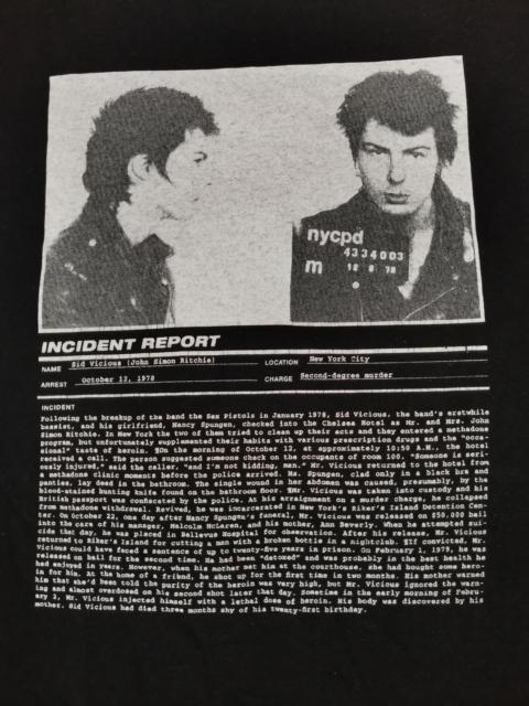 Vintage Sid Vicious Incident Report Tee Punk Seditionaries