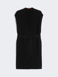 DETAILS Long gilet featuring a silhouette-accentuating tie belt at the waist. Linen-knit stretch viscose yarn gilet Straight fit Drop-shoulder sleeveless cut Patch front pockets COMPOSITION AND CARE 72% viscose, 28% polyester. Hand wash cold; do not bleach; do not tumble dry; flat drying in the shade; cool iron; professionally dry clean perchloroethylene - mild process; do not wet clean.; iron with a cloth between.; using neutral detergent. Distributed by Max Mara S.r.l., registered office in Reggio Emilia (Italy), Via Giulia Maramotti 4, 42124 (IT)