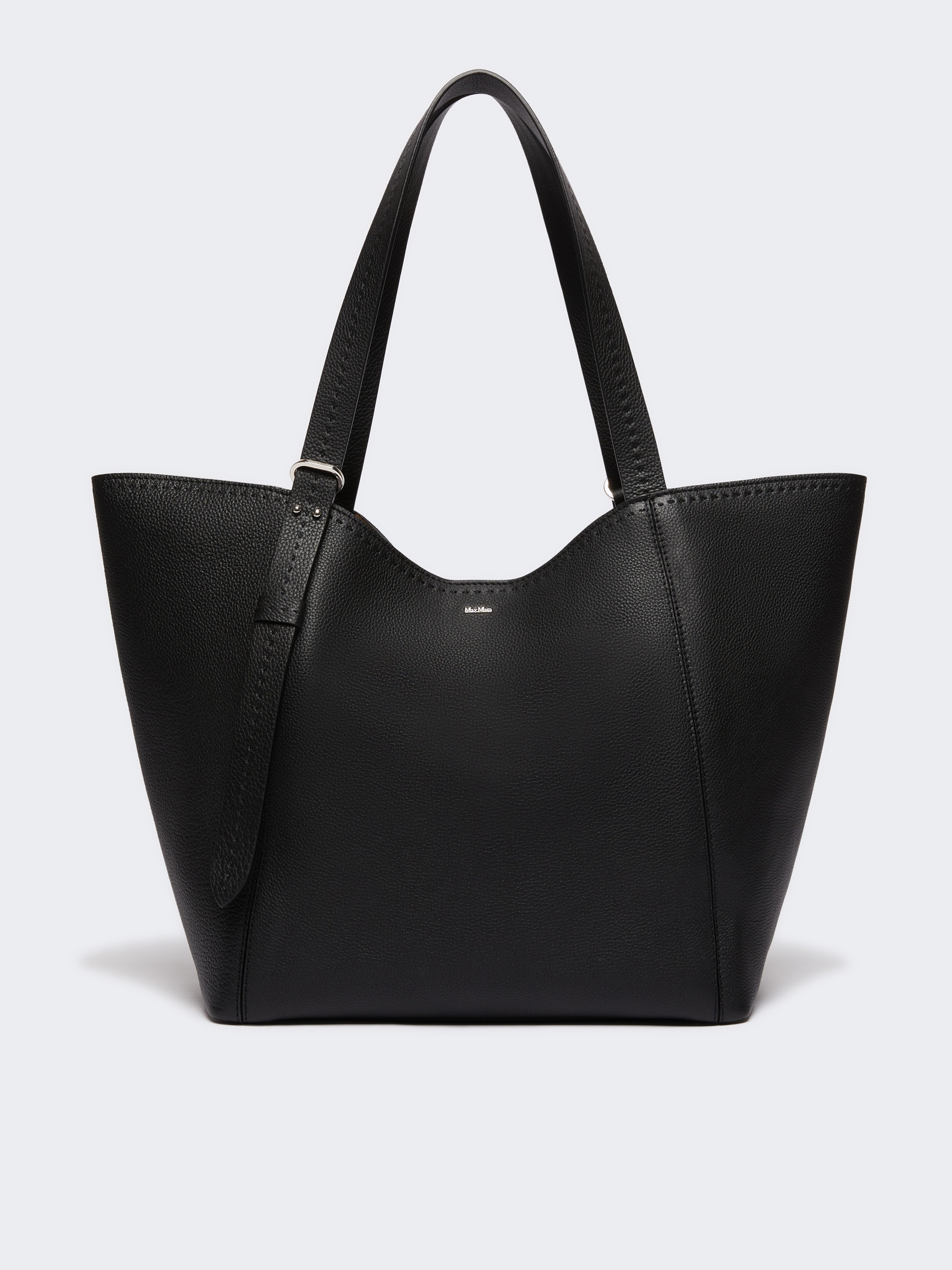 DETAILS Archetipo bag featuring a trapezoid shape and a light and essential design with an unlined effect. Finished with a tailor’s pick stitch and metal Max Mara logo. Bag in tumbled calfskin Nappa leather interior and removable zip pouch to use as a purse Internal ring for attaching small leather items Oval handles, for the hand or shoulder, adjustable with concealed holes Leather base with metal feet Fastening with magnetic button Measurements: 49 x 18 x 29 cm COMPOSITION AND CARE Handbag in calf; inside in cattle. Distributed by Max Mara S.r.l., registered office in Reggio Emilia (Italy), Via Giulia Maramotti 4, 42124 (IT)