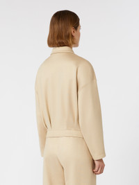 DETAILS Long-sleeved cropped sweatshirt with dropped shoulders, gathered motif on the inside and embossed Max Mara logo on the left sleeve. Silk and cotton sweatshirt Relaxed fit Shirt collar Front fastening with double slider zip Zipped welt pockets Pleated pattern sewn at the waist on the front and back COMPOSITION AND CARE 55% silk, 43% cotton, 2% elastane. Hand wash cold (40°c max); do not bleach; do not tumble dry; drip line drying in the shade; cool iron; do not dry clean; do not wet clean.; iron with a cloth between.; using neutral detergent.; don’t rub.; turn the articles inside out before washing.; to be ironed on reverse.; do not iron the decoration. Distributed by Max Mara S.r.l., registered office in Reggio Emilia (Italy), Via Giulia Maramotti 4, 42124 (IT)