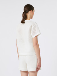 DETAILS Basic, straight-cut T-shirt. T-shirt in thick technical mesh Boxy fit Crew neck Short sleeves with dropped shoulders Customised leather plate on the back of the neck COMPOSITION AND CARE 100% polyester. Do not wash; do not bleach; do not tumble dry; cool iron; professionally dry clean perchloroethylene - mild process; do not wet clean.; iron with a cloth between. Distributed by Max Mara S.r.l., registered office in Reggio Emilia (Italy), Via Giulia Maramotti 4, 42124 (IT)