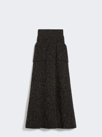 DETAILS Long skirt with a full, flared volume, entirely knitted in fisherman’s rib. Wool and cashmere mouline yarn skirt Flared Elasticated high waist Pockets at the front Overlapping central slit on the front Unlined COMPOSITION AND CARE 70% wool, 30% cashmere. Do not wash; do not bleach; do not tumble dry; cool iron; professionally dry clean perchloroethylene - mild process; do not wet clean.; iron with a cloth between. Distributed by Max Mara S.r.l., registered office in Reggio Emilia (Italy), Via Giulia Maramotti 4, 42124 (IT)