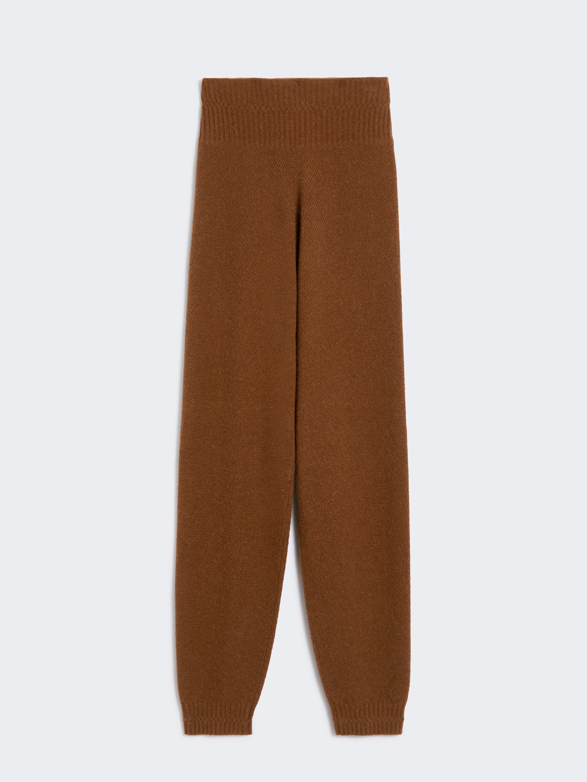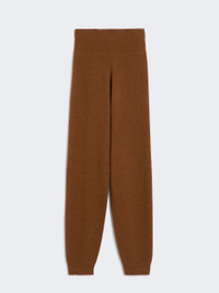 DETAILS Joggers-style trousers featuring a ribbed high waist with internal jacquard logo tape. Pure camel yarn trousers Relaxed-fit, slightly tapered towards the hem Elastic ankle cuffs Ribbed edges COMPOSITION AND CARE 100% camelwool. Hand wash cold (40°c max); do not bleach; do not tumble dry; flat drying in the shade; cool iron; professionally dry clean perchloroethylene - mild process; do not wet clean.; iron with a cloth between.; using neutral detergent. Distributed by Max Mara S.r.l., registered office in Reggio Emilia (Italy), Via Giulia Maramotti 4, 42124 (IT)