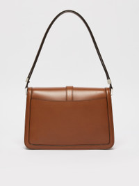 DETAILS Retro-style handbag for shoulder or crossbody use. Handbag in semi-glossy natural calfskin Accordion-style suede interior Zipped inner pocket and a flat outer pocket Adjustable and removable single handle with side clasp detail Slightly embossed profiles Flapover design, complete with a Max Mara logo-decorated square metal button Size: 27.5 x 6.5 x 20.5 cm COMPOSITION AND CARE Handbag in calf; inside in goat leather. Distributed by Max Mara S.r.l., registered office in Reggio Emilia (Italy), Via Giulia Maramotti 4, 42124 (IT)