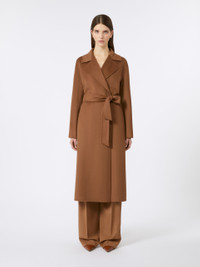 DETAILS Midi robe coat with matching belt to accentuate the silhouette. Silk, cashmere and wool drap double cloth coat Enveloping volume Lapel collar Long kimono sleeves Side inset pockets Unlined COMPOSITION AND CARE Fabric 88% virgin wool, 6% silk, 6% cashmere; - except joining thread. Do not wash; do not bleach; do not tumble dry; cool iron; professionally dry clean perchloroethylene - mild process; do not wet clean. Distributed by Max Mara S.r.l., registered office in Reggio Emilia (Italy), Via Giulia Maramotti 4, 42124 (IT)
