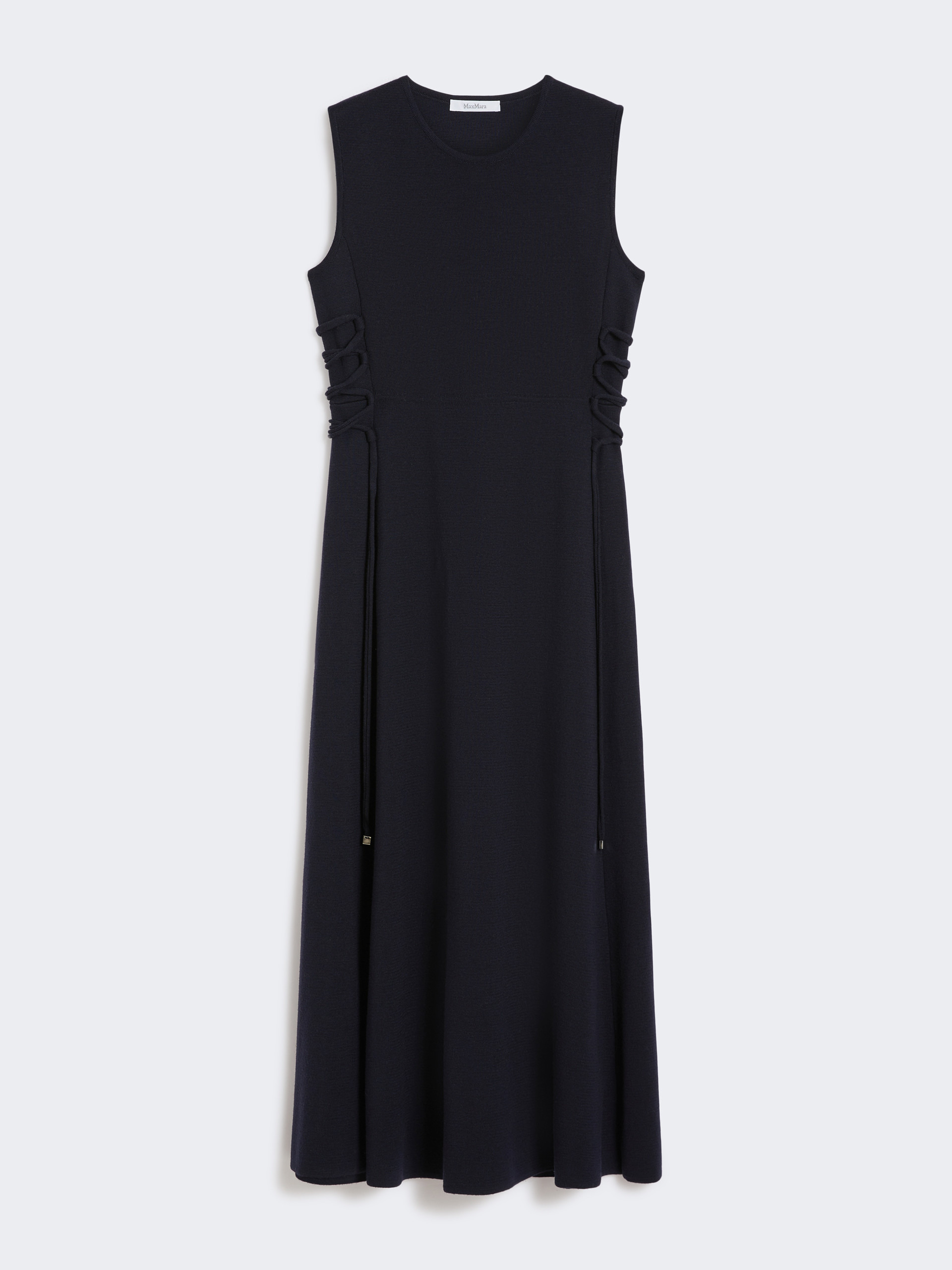 DETAILS Long, sleeveless dress with drawstring detail on the sides with metal ends. Dress in pure wool yarn, in a fabric-stitch knit Fit & flare lines Crew neck Seam at the waist COMPOSITION AND CARE 100% virgin wool. Hand wash cold (40°c max); do not bleach; do not tumble dry; flat drying in the shade; cool iron; professionally dry clean perchloroethylene - mild process; do not wet clean.; iron with a cloth between.; using neutral detergent. Distributed by Max Mara S.r.l., registered office in Reggio Emilia (Italy), Via Giulia Maramotti 4, 42124 (IT)