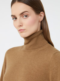 DETAILS Turtleneck sweater crafted from a wool and cashmere blend, featuring a high fold-over collar. Its special knit structure ensures balanced proportions without compromising comfort. Wool and cashmere yarn turtleneck sweater Regular fit Fold-down rib-knit high neck Long set-in sleeves Rib-knit cuffs and hem Straight hem COMPOSITION AND CARE 80% wool, 20% cashmere. Hand wash cold (40°c max); do not bleach; do not tumble dry; flat drying in the shade; cool iron; professionally dry clean perchloroethylene - mild process; do not wet clean.; iron with a cloth between.; using neutral detergent. Distributed by Max Mara S.r.l., registered office in Reggio Emilia (Italy), Via Giulia Maramotti 4, 42124 (IT)