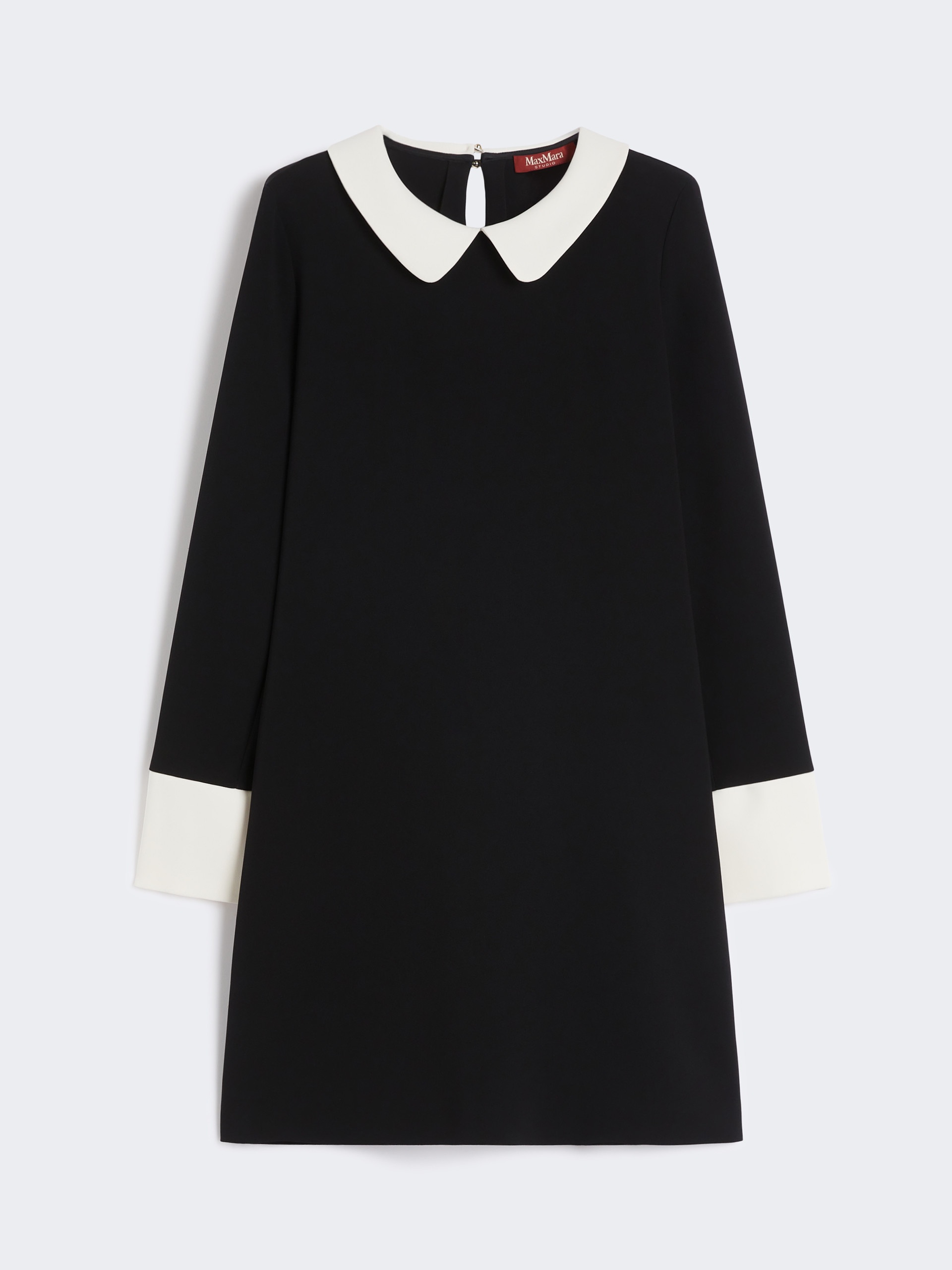 DETAILS Straight-fit short dress featuring contrasting-colour details. Cady dress Straight fit Rounded collar Set-in sleeves with 4 decorative buttons along the long cuffs Keyhole and 2-button detail on the back In-seam side pockets Unlined model COMPOSITION AND CARE 71% triacetate, 29% polyester. Machine wash cold delicate cycle; do not bleach; do not tumble dry; line drying in the shade; cool iron; professionally dry clean perchloroethylene - mild process.; wash the garment while it is fastened.; do not iron the buttons.; protect buttons before washing.; turn the articles inside out before washing. Distributed by Max Mara S.r.l., registered office in Reggio Emilia (Italy), Via Giulia Maramotti 4, 42124 (IT)