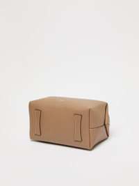 DETAILS Handbag with two handles and slightly folded sides. Complete with removable shoulder strap for crossbody wear, custom key tag, leather feet and metal Max Mara lettering on the front. Natural calfskin bag Suede interior with flat M-shaped inner pocket Zip fastening at the top and branded padlock on one side Size: 26 x 15 x 13 cm COMPOSITION AND CARE Handbag in calf; inside in goat leather. Distributed by Max Mara S.r.l., registered office in Reggio Emilia (Italy), Via Giulia Maramotti 4, 42124 (IT)