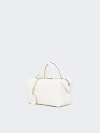 DETAILS Small Boston handbag with double handle and M-shaped folded sides with magnet, padlock and customised key-holder tag. Smooth natural calfskin leather Boston bag Interior bonded in suede with internal flat M-shaped pocket Shoulder strap removable with moulded snap-hook clasps Leather feet and D-rings for shoulder straps and small leather items Max Mara logo hot-stamped with nickel foil Top zip closure Measurements: 17.5 x 10 x 9 cm COMPOSITION AND CARE Handbag in calf; inside in goat leather. Distributed by Max Mara S.r.l., registered office in Reggio Emilia (Italy), Via Giulia Maramotti 4, 42124 (IT)