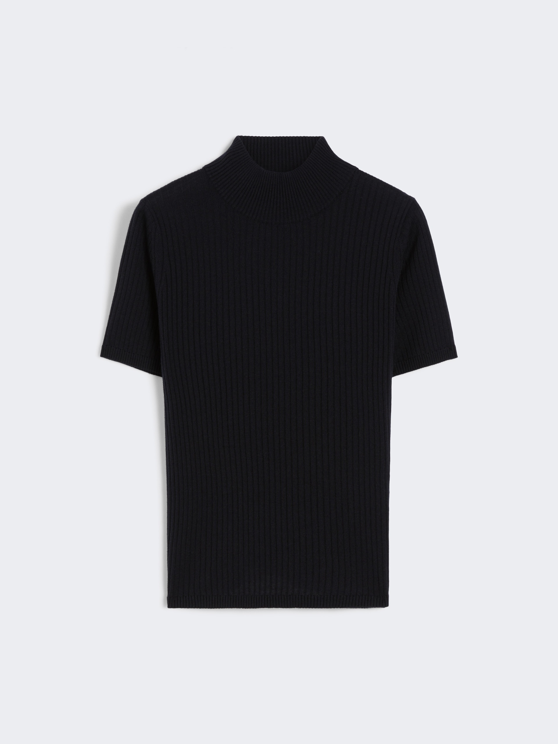 DETAILS Turtleneck jumper with flat ribbed knit that enhances the silhouette. Wool and silk yarn roll neck Figure-hugging Ribbed roll neck Short set-in sleeves COMPOSITION AND CARE 55% silk, 45% wool. Hand wash cold (40°c max); do not bleach; do not tumble dry; flat drying in the shade; cool iron; professionally dry clean perchloroethylene - mild process; do not wet clean.; iron with a cloth between.; using neutral detergent. Distributed by Max Mara S.r.l., registered office in Reggio Emilia (Italy), Via Giulia Maramotti 4, 42124 (IT)