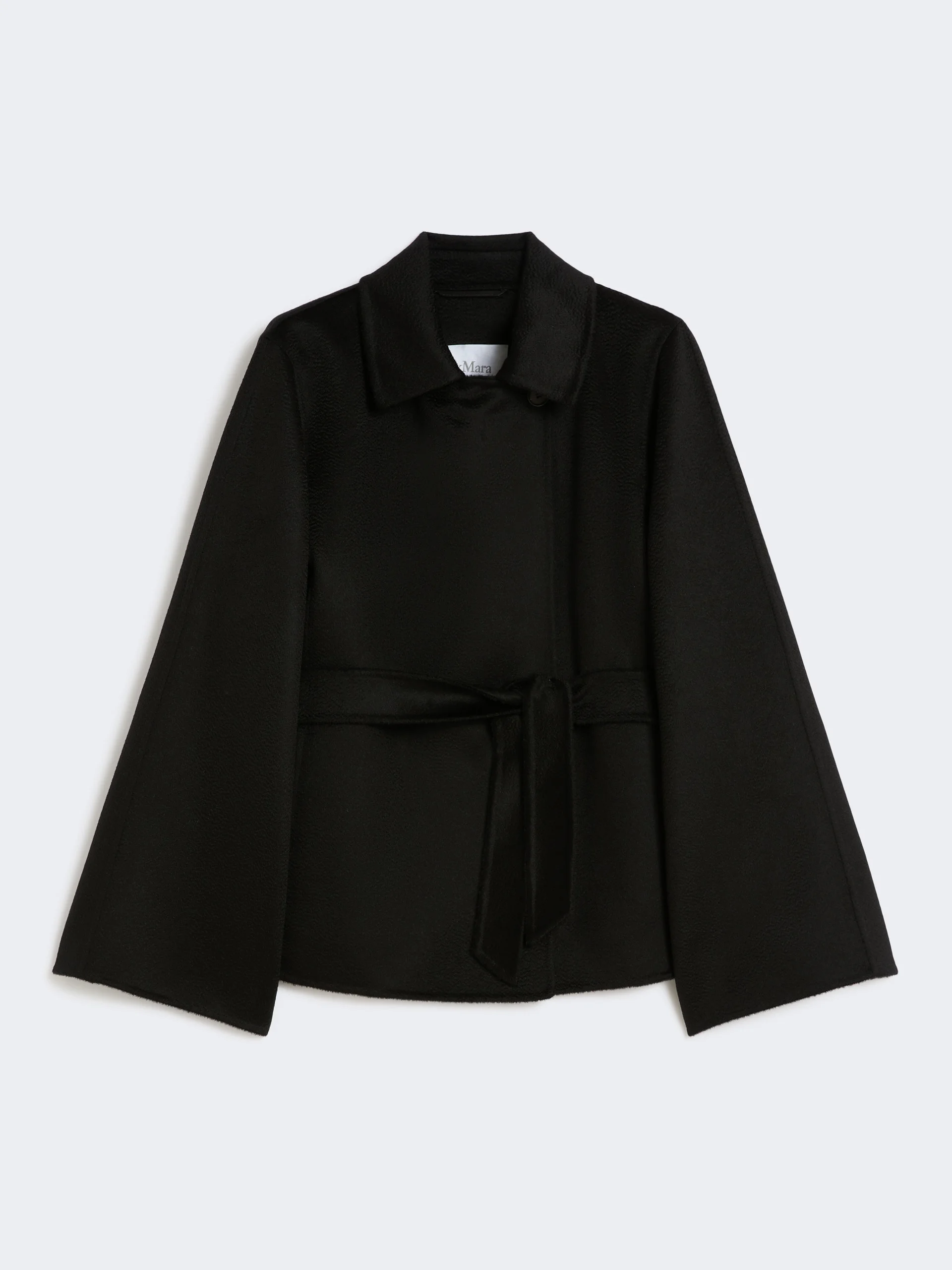 DETAILS Cropped coat, featuring a matching belt to accentuate the waist. Coat in hand-stitched pure cashmere zibeline double-face drap Straight cut Dual-use collar to wear open with lapels or closed with a button Three-quarter set-in sleeves with roll-back cuff Side inset pockets Unlined COMPOSITION AND CARE Fabric 100% cashmere; - except joining thread. Do not wash; do not bleach; do not tumble dry; cool iron; professionally dry clean perchloroethylene - mild process; do not wet clean.; do not iron the buttons.; protect buttons before washing.; contains non-textile parts of animal origin. Distributed by Max Mara S.r.l., registered office in Reggio Emilia (Italy), Via Giulia Maramotti 4, 42124 (IT)