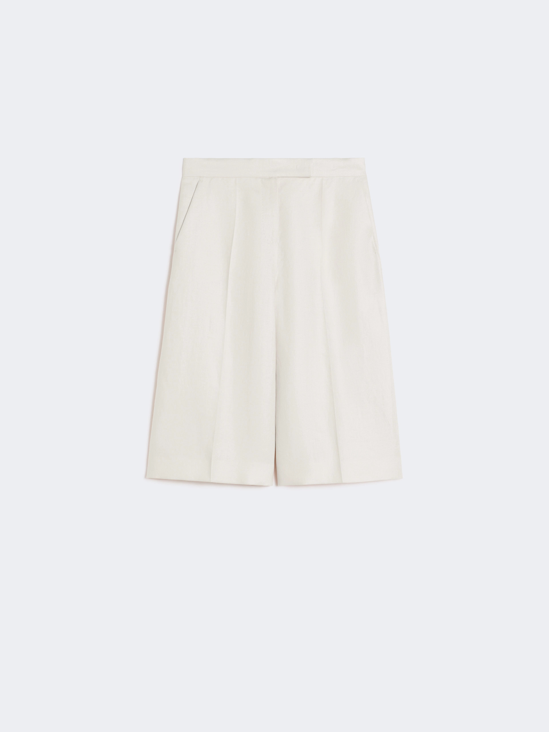 DETAILS Tailored-style Bermuda shorts. - Bermuda shorts in pure linen twill fabric - Wide leg - High-cut waistband with a fly-covered zip and hook-and-bar fastening - Slant side pockets - Welt rear pockets - Pressed pleat detail and sewn darts on the back of the waist COMPOSITION AND CARE 100% flaxlinen. Do not wash; do not bleach; do not tumble dry; cool iron; professionally dry clean perchloroethylene - mild process; do not wet clean.; protect buttons before washing. Distributed by Max Mara S.r.l., registered office in Reggio Emilia (Italy), Via Giulia Maramotti 4, 42124 (IT) Collection: Max Mara Product code: 1131036206006 - MXMKAKI