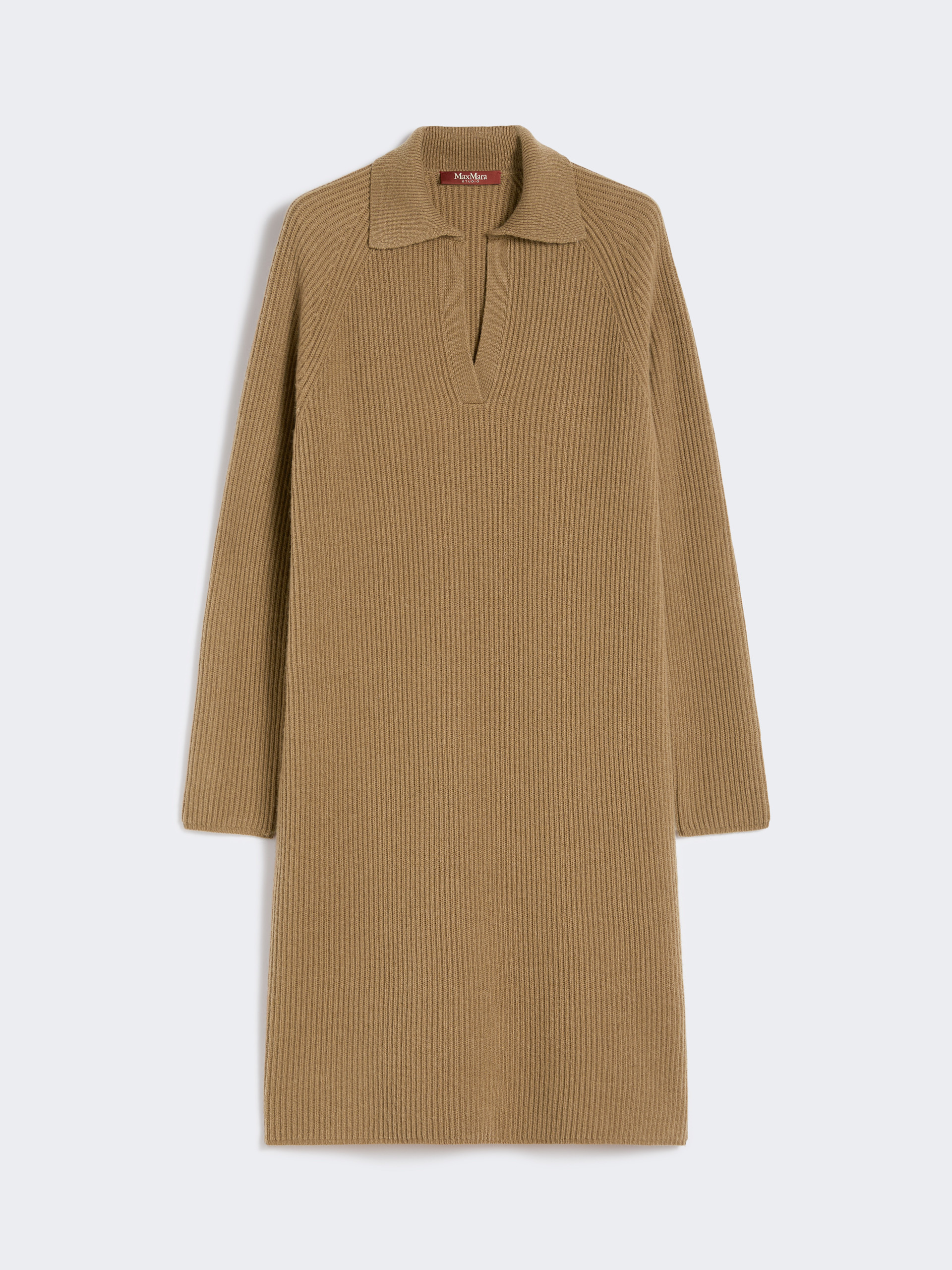 DETAILS Short knitted dress with fisherman’s rib knit motif. Wool and cashmere knit dress Straight line and soft volume Open polo-shirt collar Long raglan sleeves Straight hem COMPOSITION AND CARE 80% wool, 20% cashmere. Hand wash cold (40°c max); do not bleach; do not tumble dry; flat drying in the shade; cool iron; professionally dry clean perchloroethylene - mild process; do not wet clean.; iron with a cloth between.; using neutral detergent. Distributed by Max Mara S.r.l., registered office in Reggio Emilia (Italy), Via Giulia Maramotti 4, 42124 (IT)
